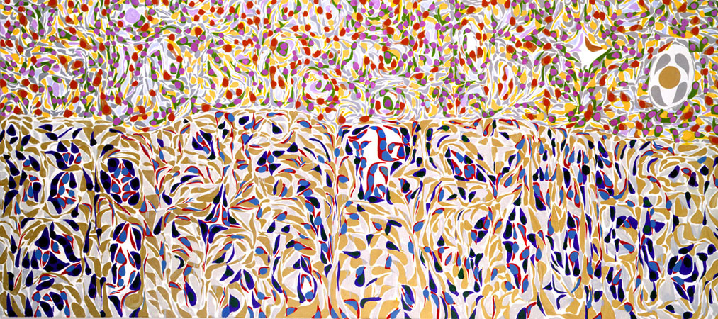 | I AM (ANDROGYNOUS) Oil on linen, 7 x 2 feet | I AM (LUCIFER) Oil on linen, 4 x 9 feet | EQUILIBRIUM Oil on linen, 48 x 96 | I AM (EXCESS) Oil on linen, 36 x 108 | I AM (INTER TRIBAL) Oil on linen, 4 x 9 feet | RESERVED | I AM (BRIGHT CONQUEROR) Oil on linen, 6 x 9 feet | I AM (SWEET SPOT) Oil on linen, 5 feet 3 inches x 8 feet 3 inches | I AM (SLICE OF MOMENT) Oil on linen, 6 x 6 feet | I AM (UNTITLED) Oil on linen, 50 x 42 | I AM (BOTH SIDES FOREVER) Oil on linen, 72 x 90 | I AM (VOID) Oil on linen, 3 x 9 feet | I AM (HOLOGRAPHIC) 3 Oil on linen, 42 x 50 | I AM (EQUINOX) Oil on linen, 72 x 72 | I AM (SPECTRUM) 2001 Oil on linen, 48 x 84 | OPTICAL OPTIMISM 3 Oil on linen, 52 x 40 |