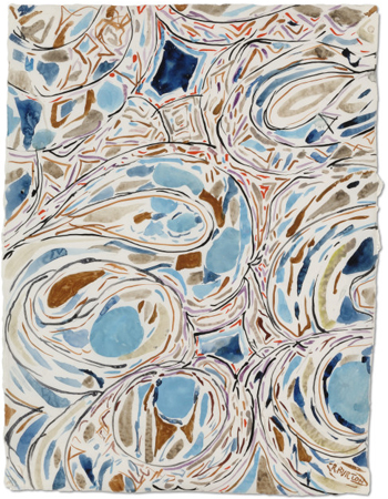 Bluesuasion Gouache, Watercolor, and Charcoal on Hand-made Paper 24 x 18 (Framed) |
