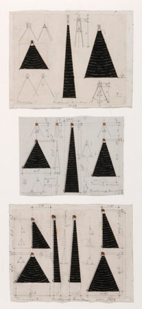 | Thought Plane Assembly Process Drawing Gouache and Pencil on Hand-made Paper 23 x 18 (Framed - 32 x26) | Triangles 1, 2, and 3 Oil on Canvas on Paper 32 x 13 (Including 3 separate pages) (Framed - 36 x 18) | Thought Plane Detail and Elevations Oil on Canvas on Paper with Gouache 9 x 13 (Framed - 18 x 21) | Exploded Axonometric 2 Oil on Canvas on Paper 11 x 13 (Framed - 19 x 21) | Exploded Axonometric 1 Oil on Canvas on Paper 11 x 13 (Framed - 19 x 21) | Prospect Oil on Linen on Paper with Wood 14 x 19 (Framed - 18 x 24) | Double Thought Plane OIl on Canvas on Paper 12 x 16 | Quadruple Thought Plane OIl on Canvas on Paper 10 x 28 | 4 Corners Study Pencil and Watercolor on Paper 15 x 11 | Study for Thought Plane - Mid-Scale OIl on Canvas on Paper 12 x 9 | Study for Thought Plane 5 OIl on Canvas on Paper 12 x 9 | Study for Thought Plane 6 OIl on Canvas on Paper 12 x 9 | Echoing White OIl on Canvas on Paper | Study of Female OIl on Canvas on Paper | |||||||||||||||||||||