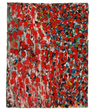 | Deep Red Oil and Gouache on Hand-made Paper 26 x 20 (Framed) |