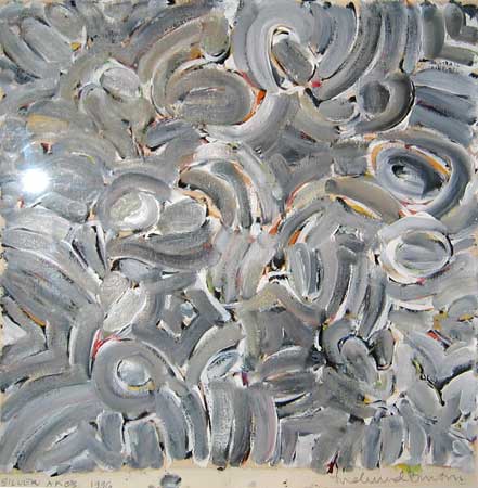 | Silver Square Oil on Canvas on Paper 20 x 20 | Mandelbrot Hallucination Gouache on Hand-made Paper 22 x 30 | Quadrants Pencil and Ink on Hand-made Paper 17 x 23 | Shivaesque Colored Pencil on Hand-made Paper 20 x 26 | View Behind the Curtain Ink on Paper 32 x 23 | |||||||||||||||||||||||||||